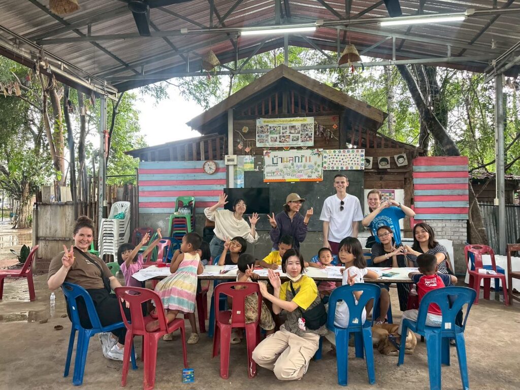 Our first volunteering event as a club was visiting an orphanage (Baan Luuk Rak). Our activities included singing, dancing, playing games, and coloring with the children! Baan Luuk Rak is a school, home, and a safe place for children who have faced difficult obstacles in their life. The teacher of the orphanage is Kru Ya who graciously allowed us to come spend some time with the children.
