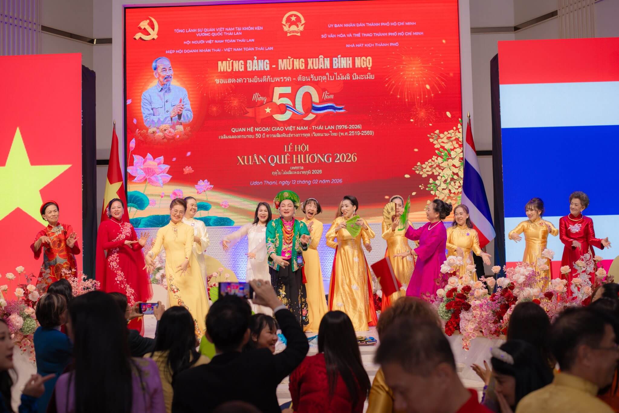 Khon Kaen University, led by Asst. Prof. Dr. Chanchai Panthong Viriyakul, President of Khon Kaen University, and Asst. Prof. Sirimonbhorn Thipsingh, Dean, Khon Kaen University International College, participated in the “Spring Festival of the Motherland” held at the VT Nam Neung Community Convention Hall in Udon Thani Province. This event was organized by the Consulate General of the Socialist Republic of Vietnam and is of significant importance for celebrating the 50th anniversary of diplomatic relations between Vietnam and Thailand.