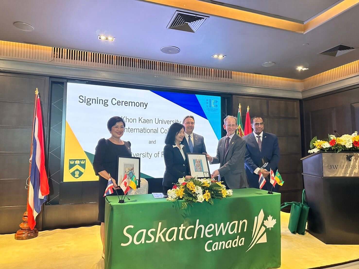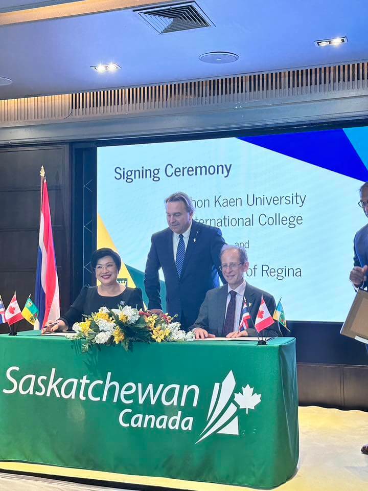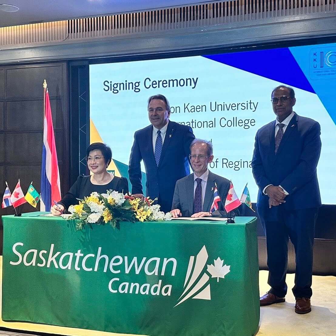 On February 26, 2026, Asst. Prof. Sirimonbhorn Thipsingh, Dean of Khon Kaen University International College (KKUIC), signed a Memorandum of Understanding (MOU) with the University of Regina (U of R), Canada. The signing ceremony took place at the JW Marriott Hotel Bangkok With coordination support from the Embassy of Canada to Thailand.