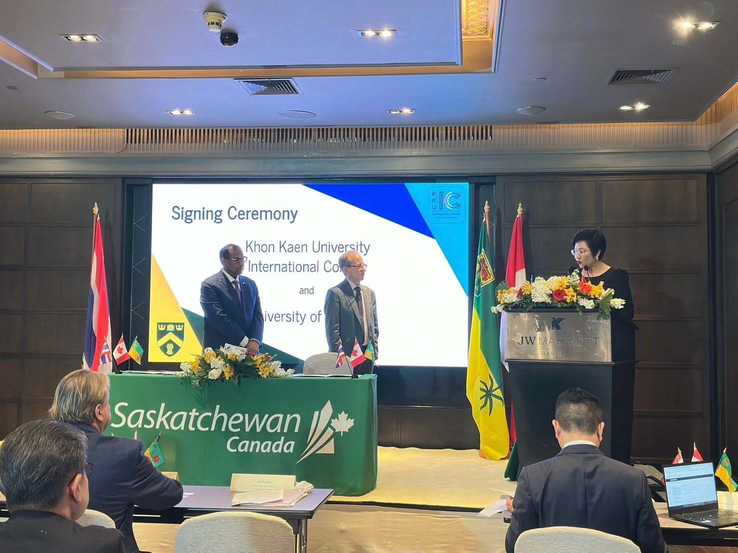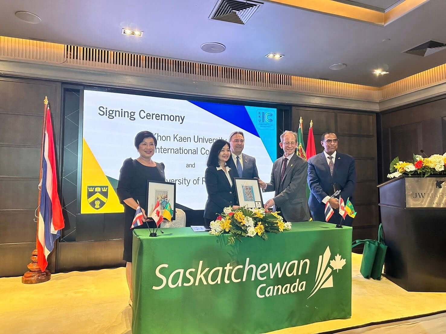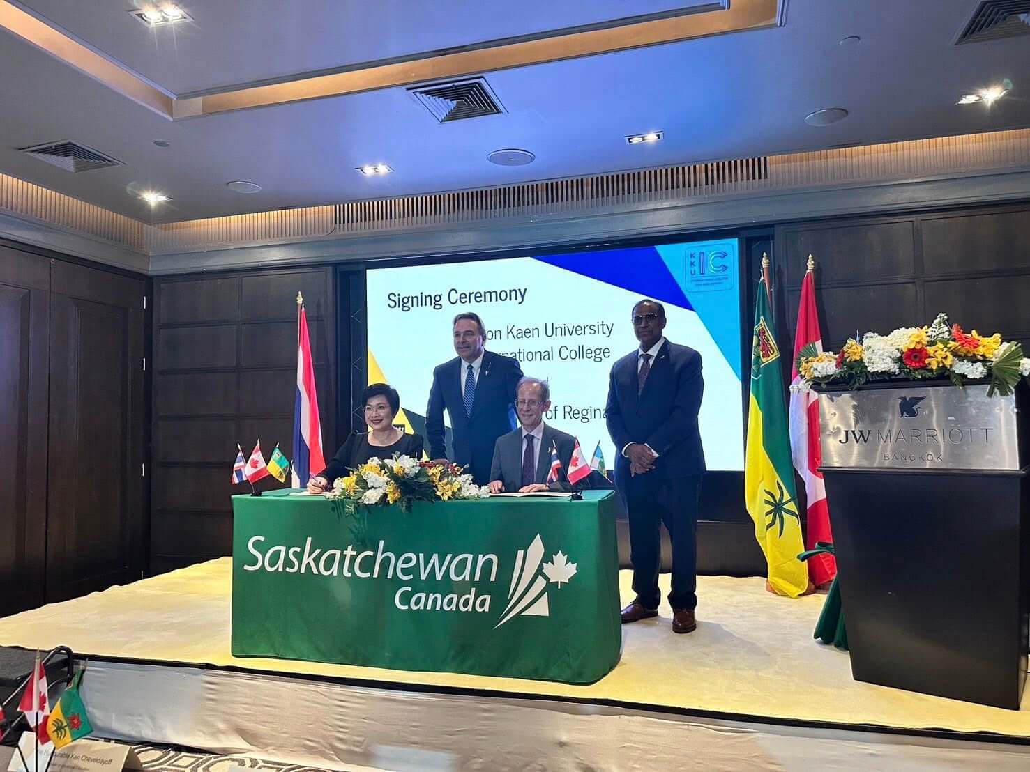 On February 26, 2026, Asst. Prof. Sirimonbhorn Thipsingh, Dean of Khon Kaen University International College (KKUIC), signed a Memorandum of Understanding (MOU) with the University of Regina (U of R), Canada. The signing ceremony took place at the JW Marriott Hotel Bangkok With coordination support from the Embassy of Canada to Thailand.