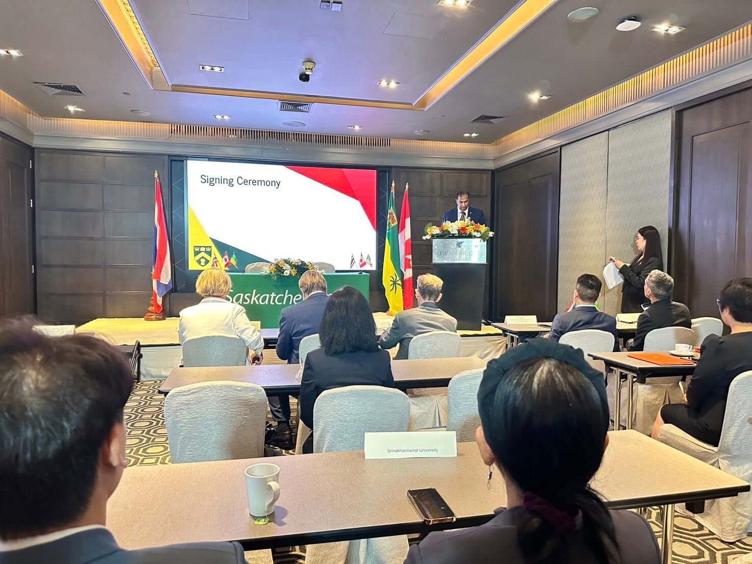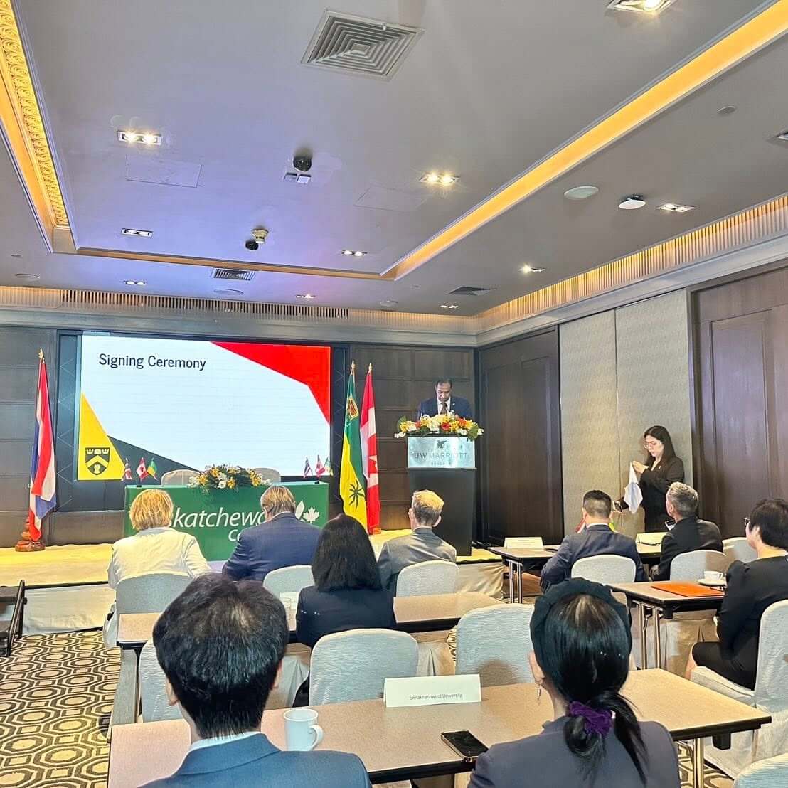 The agreement establishes a framework for academic collaboration, including student and faculty exchanges, joint research initiatives, and other cooperative programs designed to enhance international engagement. The event was attended by representatives from the Government of Saskatchewan and the Embassy of Canada to Thailand, including The Honourable Ken Cheveldayoff, Saskatchewan Minister of Advanced Education, and Dr. Jeff Keshen, President and Vice-Chancellor of the University of Regina.