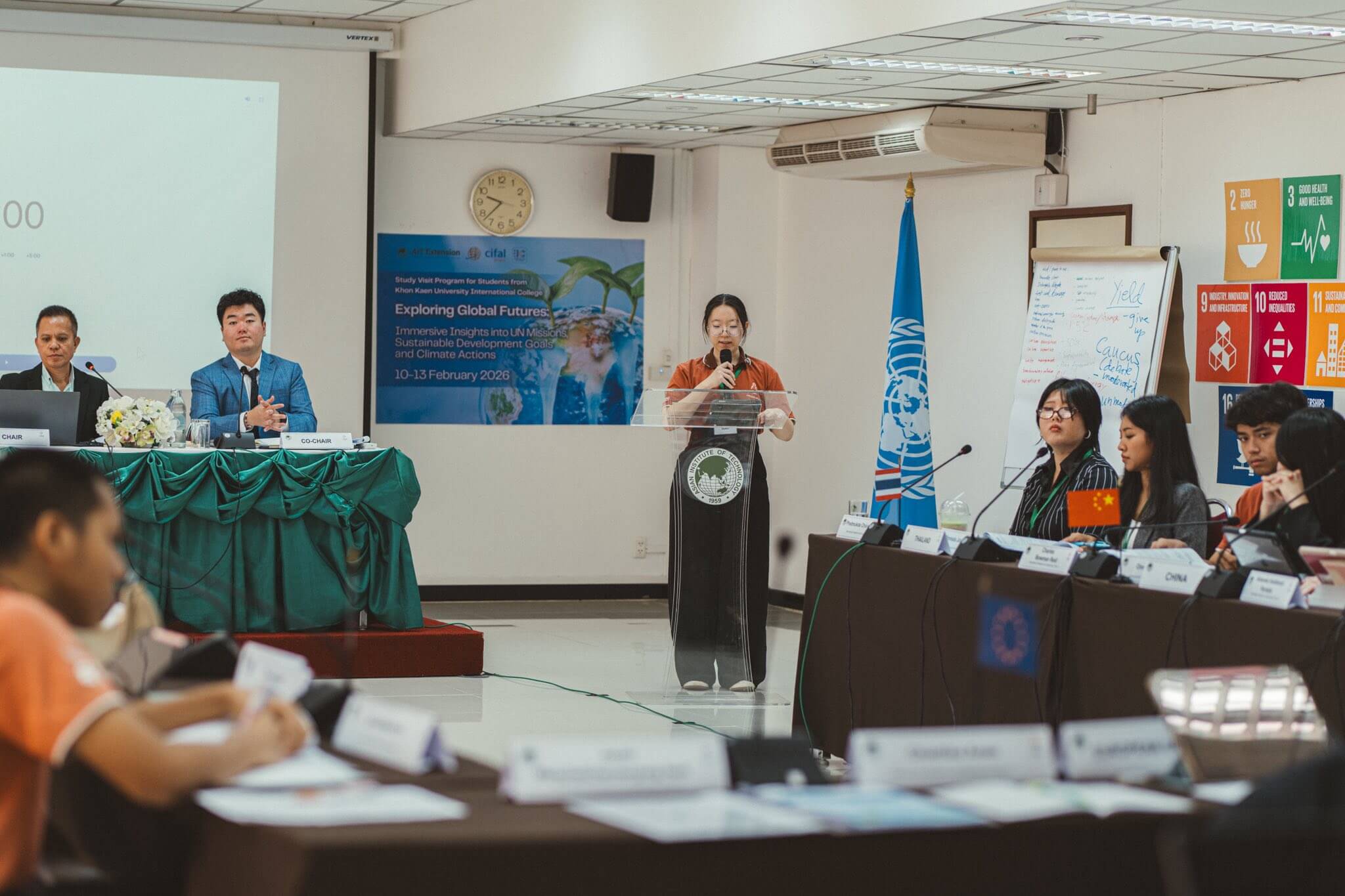 Khon Kaen University International College (KKUIC), led by Ms. Rapeepan Phittayadilok, Associate Dean for Administration and Strategic Planning, Mr. Poori Chitladaporn, Assistant Dean for Planning and Organizational Excellence, and Ms. Jittima Kraisriwattana, Assistant Dean for Creative Programs and Special Affairs, and 20 students, participated in the “Exploring Global Futures: Immersive Insights into UN Missions, Sustainable Development Goals, and Climate Actions” program from February 10-13, 2026, at the Asian Institute of Technology (AIT) and the United Nations in Thailand. This program is a collaboration between KKUIC, AIT Extension, and CIFAL Bangkok (UNITAR).